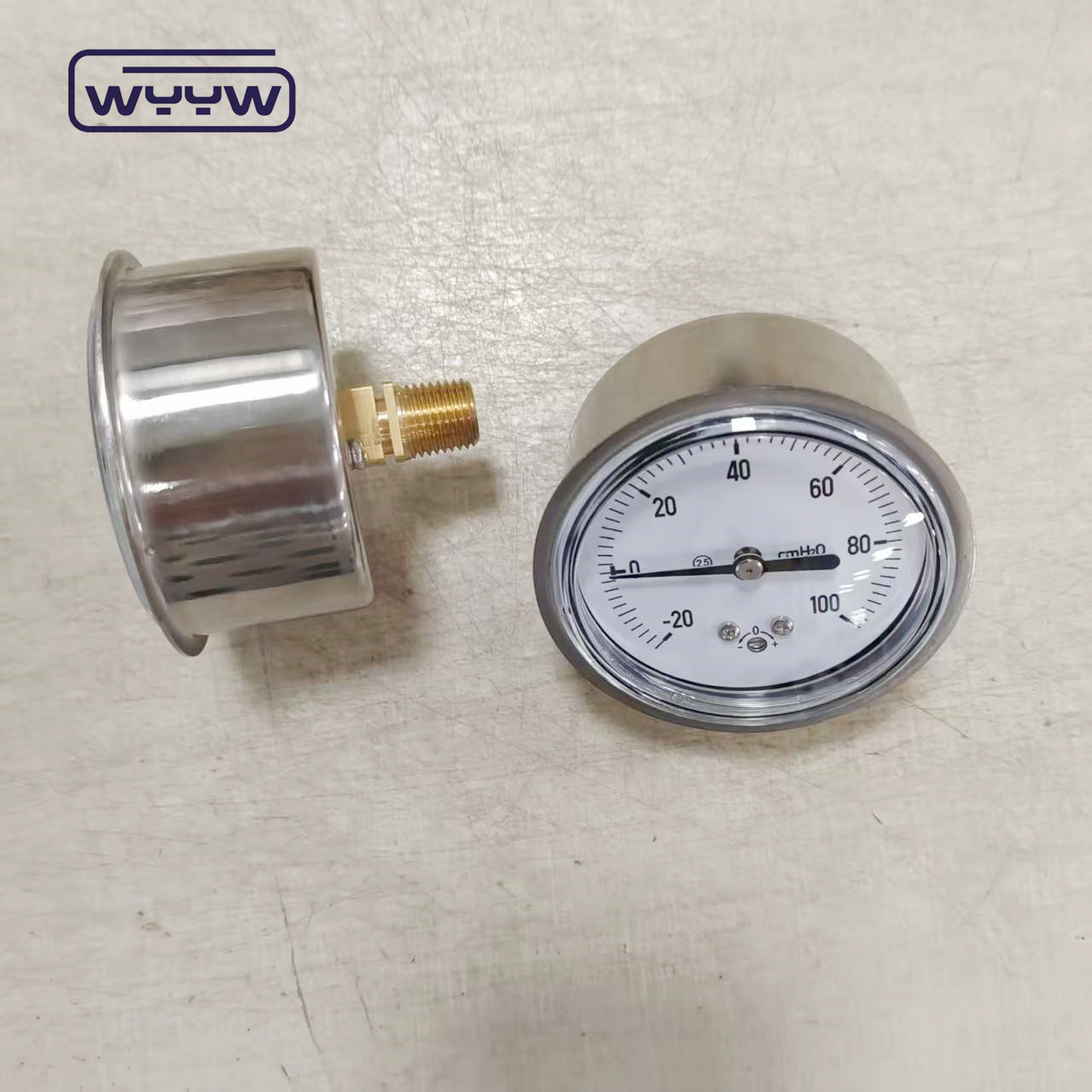 63mm stainless steel axial connection ss304 case -20+100cmh20 low pressure gauge